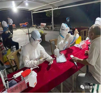 周口职业技术学院体育学院体教三班团支书李林清,在郑州疫情开始后,看到招募志愿者就积极报名,参加了志愿者,帮助医护人员进行核酸检测,维护秩序,送水,送温暖。组织居民们进行扫码登记核酸检测充分展现了周口职业技术学院学子们助人为乐,积极向上的高尚品质。组织居民们进行扫码登记核酸检测。