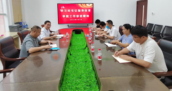 会议结束后,体育学院班子成员和各教研室主任认真学习了刘书记的讲话精神,充分认识刘书记“八讲、八重”讲话的重要意义和深刻内涵。党支部书记王晖,就刘书记的讲话精神对体育学院的发展,班子建设,制度建设及各项工作做出了指引,大家要领会讲话精神,认真学习,把讲话精神内化于心,外化于行,落实到今后的各项工作中去。