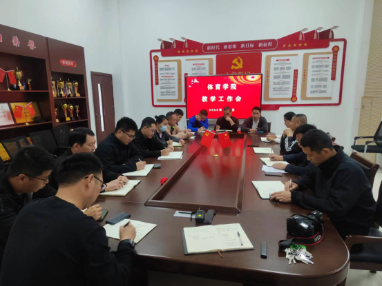 为确保新学期各项工作有序开展,2月22日,体育学院于体育馆一楼党员活动室室召开2022-2023学年第二学期期初学院工作会议。体育学院院长徐长宇、副院长王朝霞及学管办主任、教研室主任参加会议。